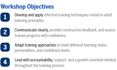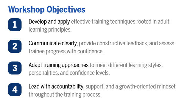 Empowering frontline workers to effectively train and support new team members, this workshop was designed and delivered focusing on the soft skills and confidence to onboard new hires effectively, creating a sustainable peer-to-peer training model.