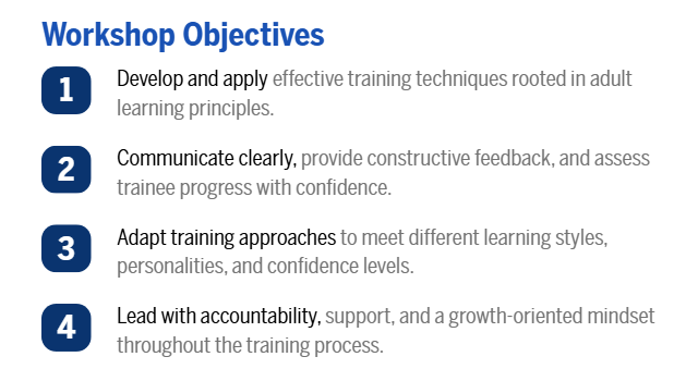 Empowering frontline workers to effectively train and support new team members, this workshop was designed and delivered focusing on the soft skills and confidence to onboard new hires effectively, creating a sustainable peer-to-peer training model.